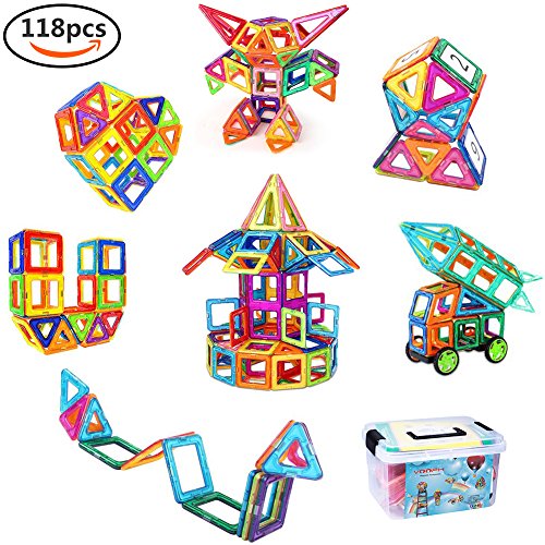 VOOPH マグネットブロック おもちゃ 磁気おもちゃ 磁石ブロック ピタゴラスおもちゃ 男の子 女の子 子ども ぶろっく オモチャ 子供 立体パズル 組み立て 幼児 オモチャ 積み木 DIY 知育玩具 学習玩具 図形 ビルディング積み木 磁気構造 想像力と創造力を育てる クリスマスプレゼント 贈り物 誕生日プレゼント 創意プレゼント 出産祝い ギフト 入園 プレゼント 親子ゲーム 保育園 幼稚園 立体遊び教具 アルファベット 数字カード 車輪 六角形 正方形 三角形 台形 収納ケース付き (118pcs)