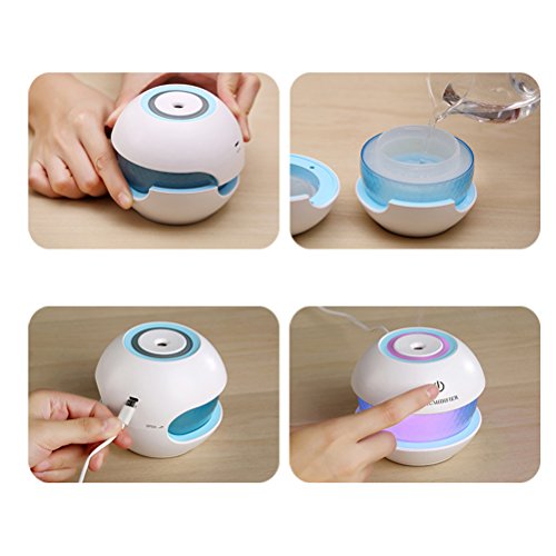 VORCOOL USBミニ加湿器クールミストエッセンシャルオイルディフューザー空気清浄機加湿器(色替えLED)家庭用、オフィス用、車用、ヨガ用超静音、ポータブルソリューション150ml(ブルー)