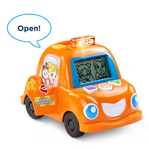 With the Cruise & Learn Car by VTech your child will be driving in the learning fast lane! Using the LCD screen, they'll love exploring four learning activities that introduce words, counting, road safety and more! Press the shape buttons to interact with the games or choose between a mommy, daddy or monkey driver. If the car runs low on gas, pretend to fill it up with the interactive gas pump. Then build motor skills while pushing the car around and hear fun driving sounds.