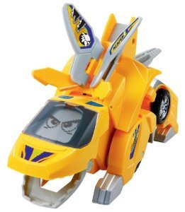 2-in-1 toy easily transforms from a dino to a vehicle and back again