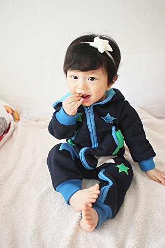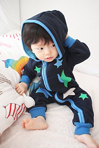 [Vaenait Baby] 6-24ヶ月 ベビー服長袖ロンパース カバーオール 男の子フリース フード付き In the Universe 18-24M