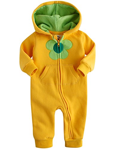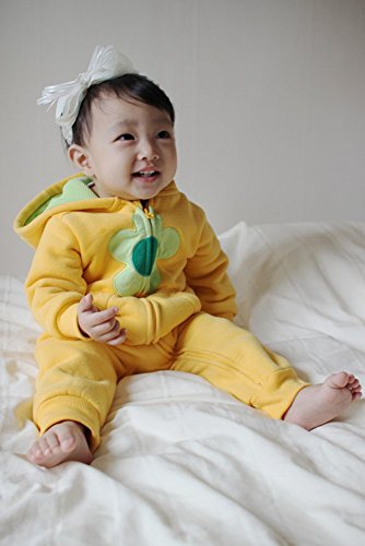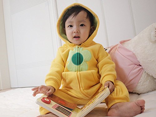 [Vaenait Baby] 6-24ヶ月ベビー服長袖ロンパース カバーオール 女の子フリース フード付き Fragrance Flower Yellow 18-24M