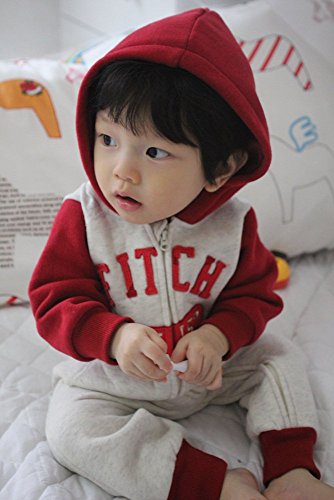 [Vaenait Baby] 6-24ヶ月 ベビー服長袖ロンパース カバーオール 女の子フリース フード付き 33X-Red 12-18M