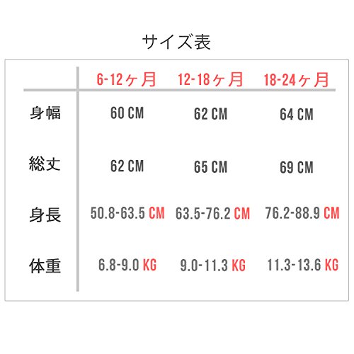 - サイズ:6-12ヶ月(54-64CM) / 12-18ヶ月(64-77CM) / 18-24ヶ月(77-89CM )