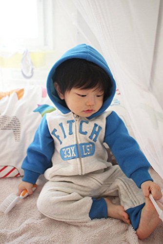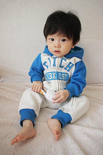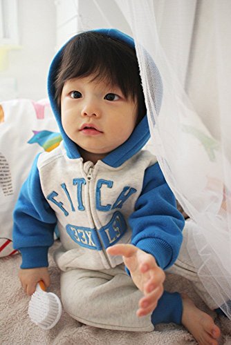 [Vaenait Baby] 6-24ヶ月 ベビー服長袖ロンパース カバーオール 男の子フリース フード付き 33X-Blue 12-18M