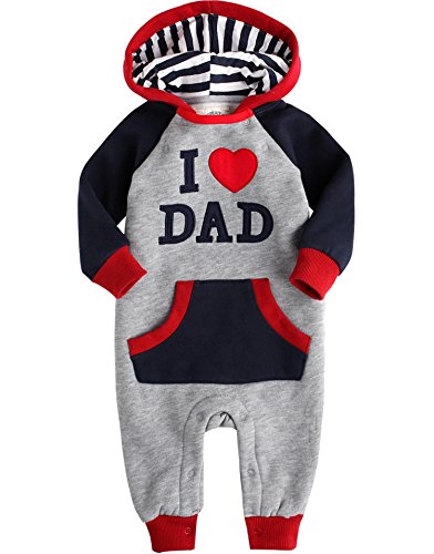 [Vaenait Baby] 6-24ヶ月ベビー服長袖ロンパース カバーオール 男の子フリース フード付き Hooded Dad 6-12M