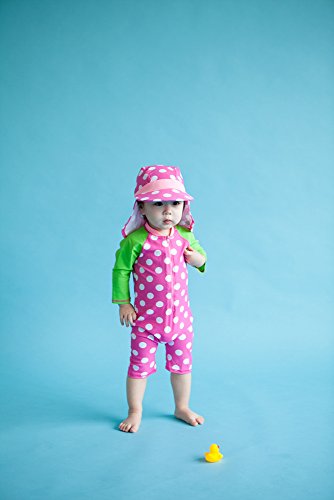 [Vaenait Baby] 0-24ヶ月紫外線カット ラッシュガードベービー子供女の子長袖ワンピース水着 Baby Cream Dot Pink S