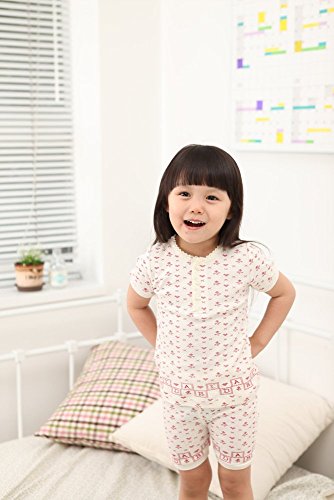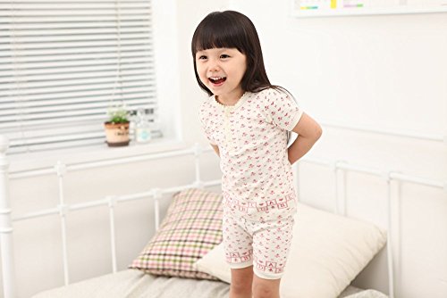 [Vaenait Baby]キッズ12ヶ月-7歳綿100%ルームウェア半袖パジャマ寝間着上下セット Lacy White Heart M