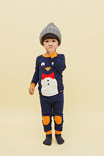 [Vaenait Baby]キッズ子供ベビー服綿100%ルームウェア長袖パジャマ寝間着上下セット Tie Penguin XL