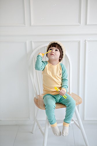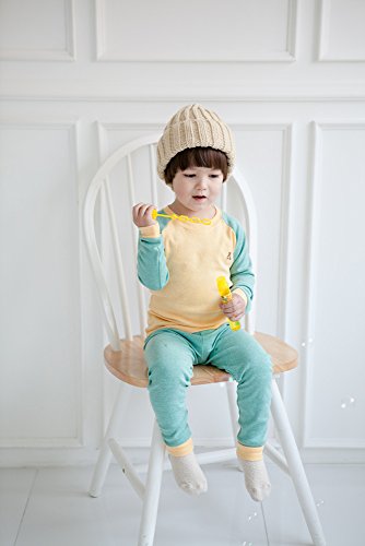 [Vaenait Baby]キッズ子供ベビー服綿100%ルームウェア長袖パジャマ寝間着上下セット Simple Raglan Yellow XS