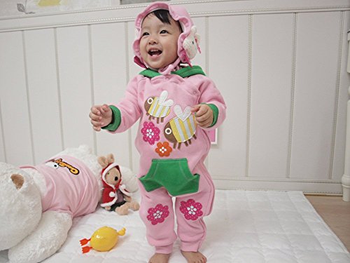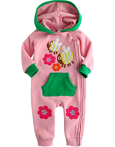 [Vaenait Baby] 6-24ヶ月 ベビー服長袖ロンパース カバーオール 女の子フリース フード付き Two bees 6-12M