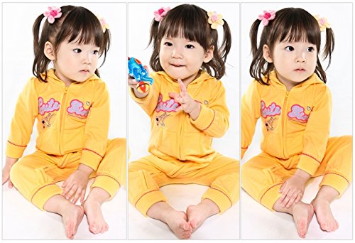 [Vaenait Baby]100%綿ベビー服ロンパースつなぎ肌着カバーオールフード付きLovely girl Yellow 12-18