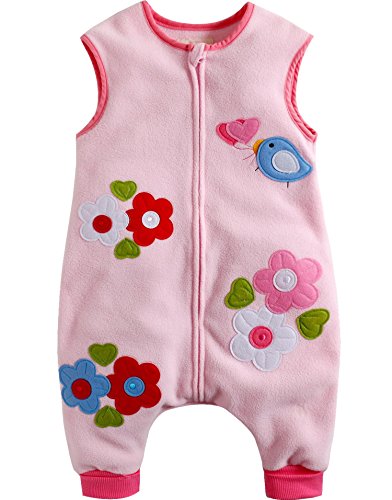 [VaenaitBaby]キッズ女の子ベービーブランケット毛布フリース寝袋スリーパーパジャマスリーブバッグ Pink Flower S