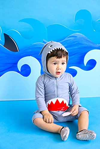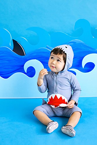 [Vaenait Baby] 0-24ヶ月UVカット ラッシュガードベビー子供男の子長袖ワンピース水着 Baby Real Jaws L
