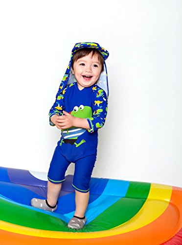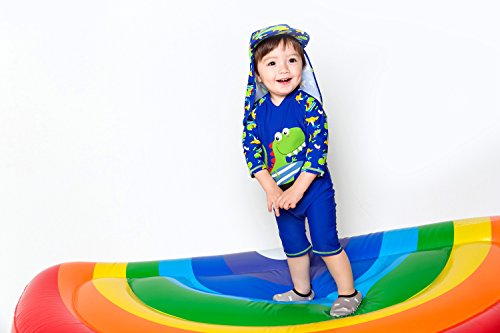 [Vaenait Baby] 0-24ヶ月UVカット ラッシュガードベビー子供男の子長袖ワンピース水着 Baby Surfing Dino L