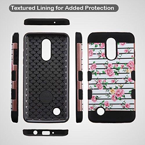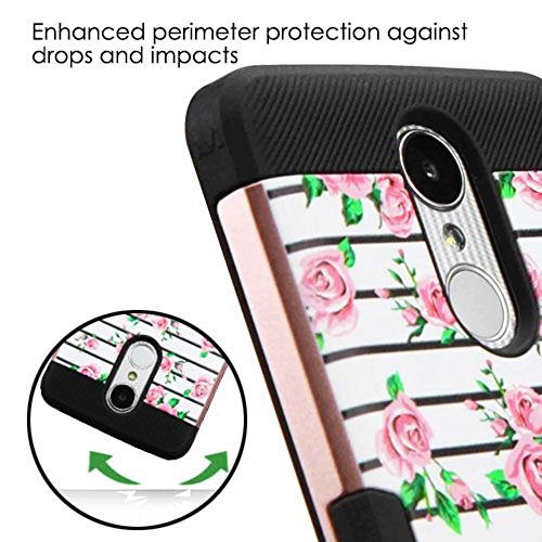 LG Aristo / Fortune / k8 ( 2017 ) / lv3 / Phoenix 3ケース、MYBAT Fresh Rosesデュアルレイヤ[衝撃吸収]保護ハイブリッドPC / TPUラバーケースカバーfor LG Aristo / Fortune / k8 ( 2017 ) / lv3 / Phoenix 3、ピンク/ホワイト