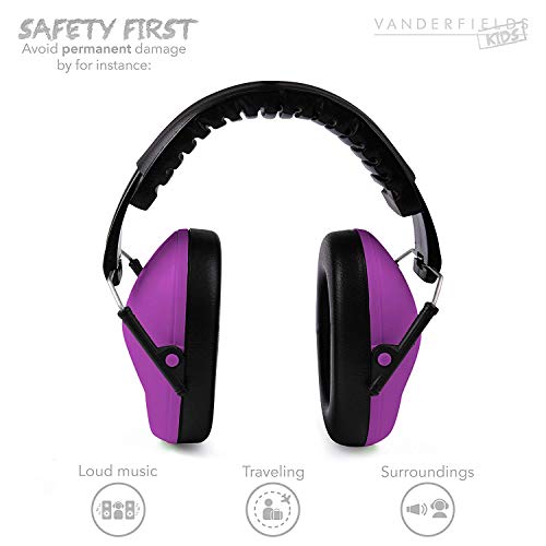 Vanderfields 子供用(推奨年齢3歳以上) 防音 イアーマフ 騒音 スポーツ観戦 コンサート 勉強・睡眠等に使用 折りたたみ可能 メンテナンスクリーナー付き (紫) [並行輸入品]