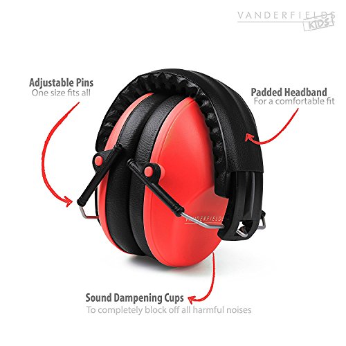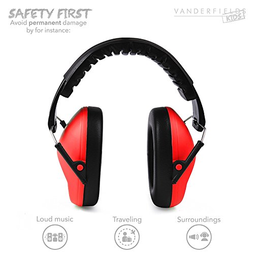 Vanderfields 子供用(推奨年齢3歳以上) 防音 イアーマフ 騒音 スポーツ観戦 コンサート 勉強・睡眠等に使用 折りたたみ可能 メンテナンスクリーナー付き (赤) [並行輸入品]
