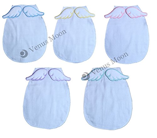 Venus Moon 可愛い 汗取りパッド 5枚セット 天使の羽 綿100% 4重ガーゼ ベビー 赤ちゃん エンジェル 快適 (青・緑・紫・黄・ピンク)