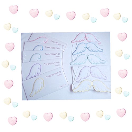 - 【新品5枚セット】羽の色:ピンク・青・緑・紫・黄。天使の羽が付いた かわいい汗取りパッド 。 綿素材 の ガーゼ は4枚重ねのため、より多くの汗を吸い取ってくれます。