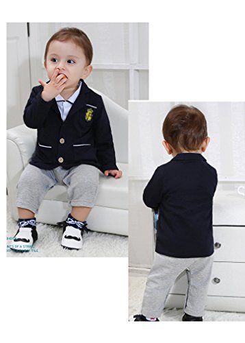 ViVaShop 子供服 ベビー フォーマル 男の子 ロンパース 結婚式 ブルー 90
