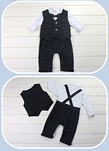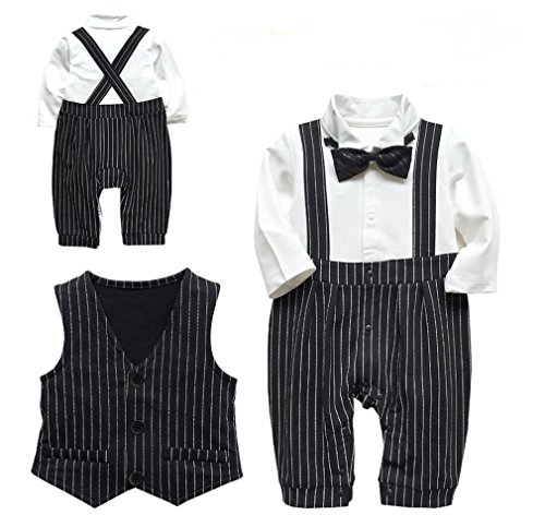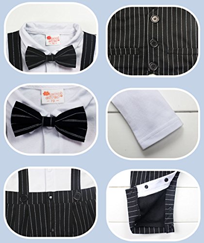 ViVaShop ベビー ロンパース 男の子 蝶ネクタイ カバーオール 新生児 結婚式 記念撮影 出産祝い ブラック 90