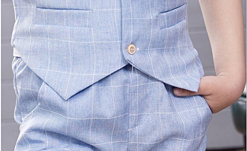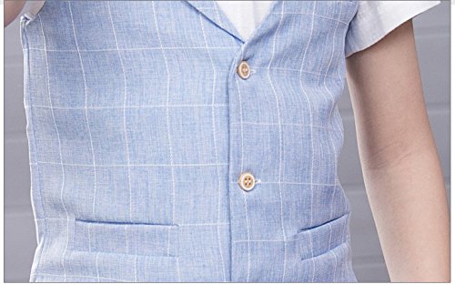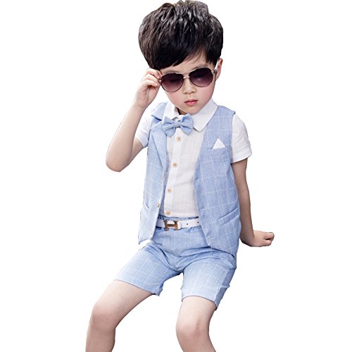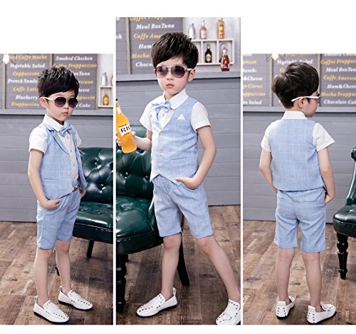 ViVaShop 男の子スーツ フォーマル シャツ パンツ 蝶ネクタイ ベスト付き 七五三 結婚式 4点セット ブルー 110cm