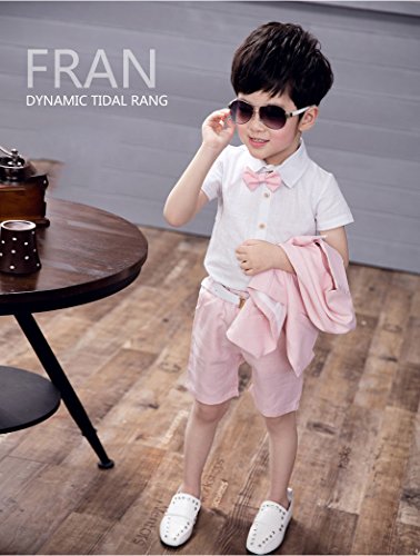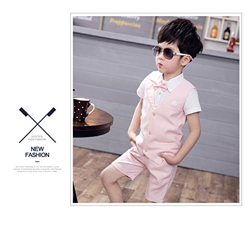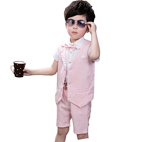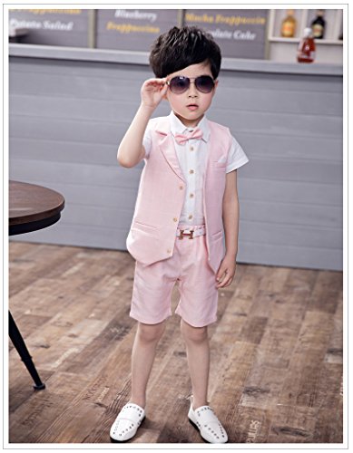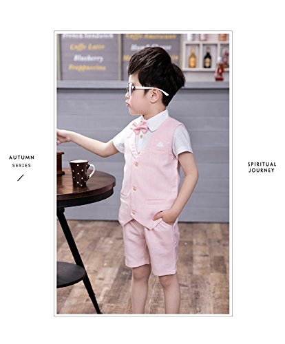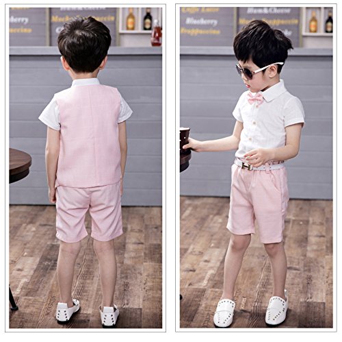 ViVaShop 男の子スーツ フォーマル シャツ パンツ 蝶ネクタイ ベスト付き 七五三 結婚式 4点セット ピンク 100cm