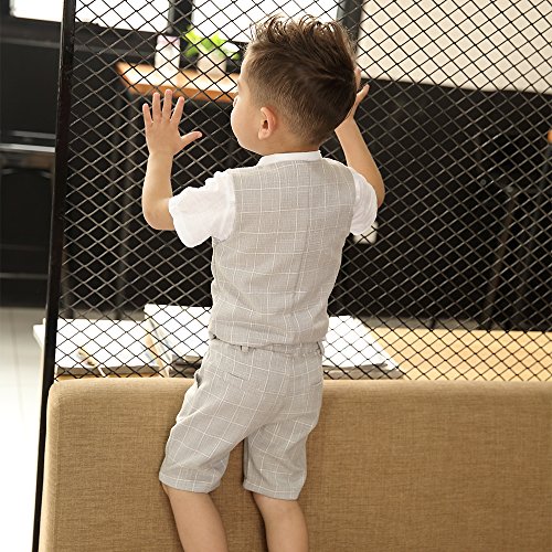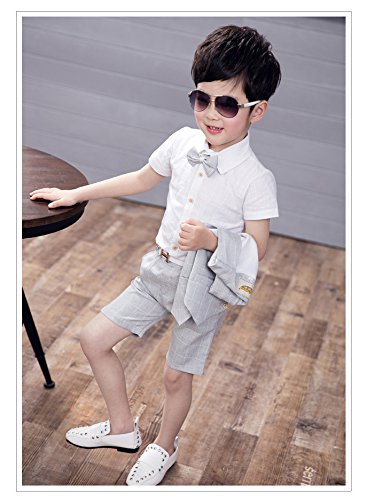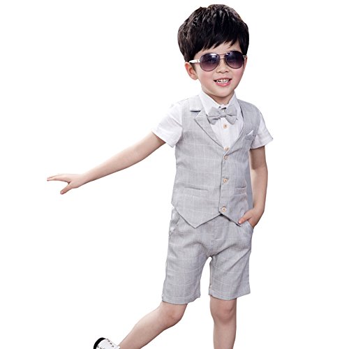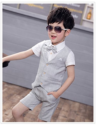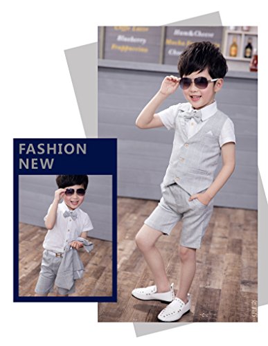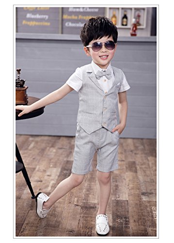 ViVaShop 男の子スーツ フォーマル シャツ パンツ 蝶ネクタイ ベスト付き 七五三 結婚式 4点セット グレー 120cm