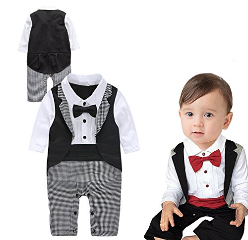 • タキシードに見えるつなぎロンパース