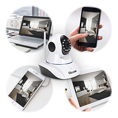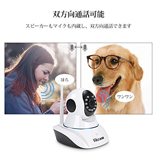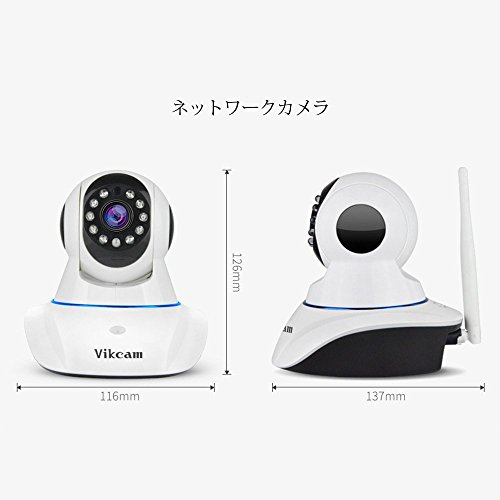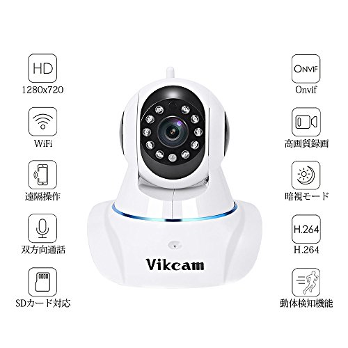 Vikcam ネットワークカメラ 720P高画質ワイヤレス監視カメラ ベビーモニター SDカード録画 スピーカーマイク内蔵 双方向対話でき 遠隔操作 回転移動機能 動体検知 暗視機能搭載 一年間保証 日本語説明書付き