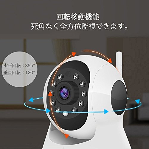 - 【回転移動、全方位監視】この防犯カメラは120度の垂直回転、355度の水平回転できます。スマホで首振りの位置をプリセットできます。監視したいところを選定して死角がなく全方位監視できます。