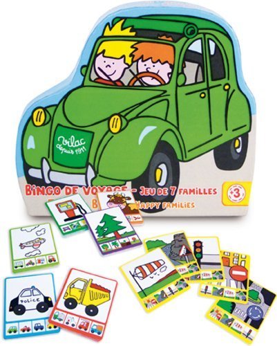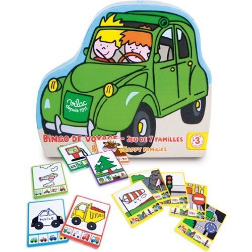 Here we go . The first one to cross all the elements of their cards by observing through the car's windows wins the bingo game. With the same cards, you can also play the happy families game. The set includes 35 brightly colored game pieces. This product is made by the well respected toy makers Vilac who have been making toys for over one hundred years, and display their passion and love of tradition in every item that they sell. Perfectly sized for small hands.