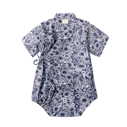 Vine ベビー 甚平 浴衣 ロンパース カバーオール 子供 和装 ショートオール 綿100% お祭り 花火 お祝い 出産祝い ( ダークブルー, 90 CM)