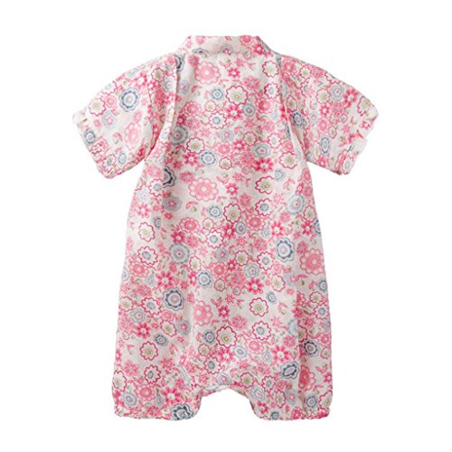 Vine 女の子 甚平 浴衣 ベビー ロンパース カバーオール 和装 ショートオール 綿100% 花柄 お祭り 花火 お祝い 出産祝い (赤, 70 CM)