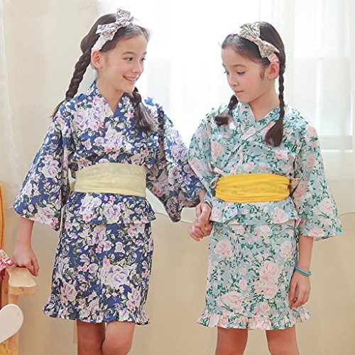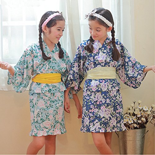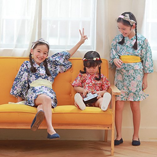 Vine 浴衣ドレス シフォン兵児帯付 ベビー 子供 浴衣 セパレート 3点セット 女の子 和装 ゆかた 花柄 夏祭り 盆踊り お宮参り お祝い (ブルー 100cm)