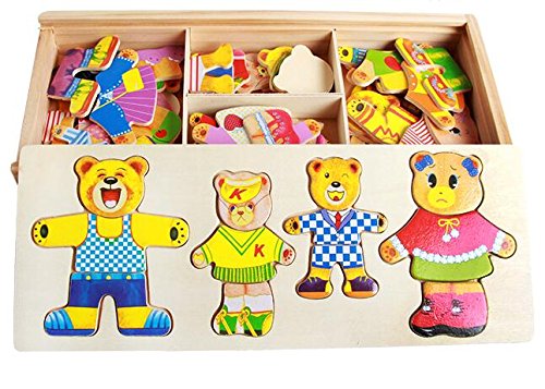 Vine® 新・着せ替えパズル クマのファミリー ドレスアップパズル おままごと 木のおもちゃ ごっこ遊び 知育玩具 (4人家族)