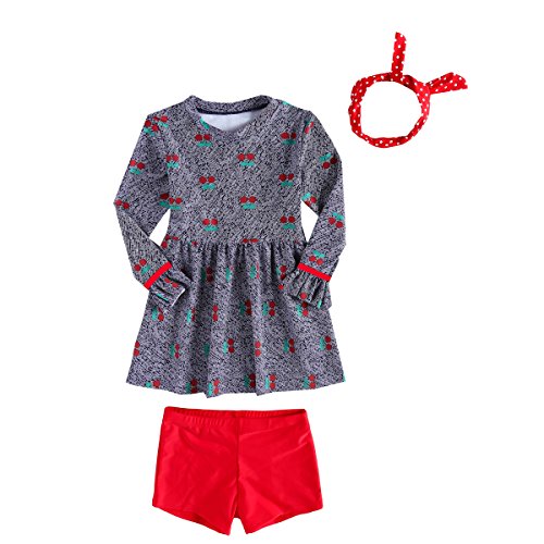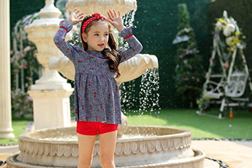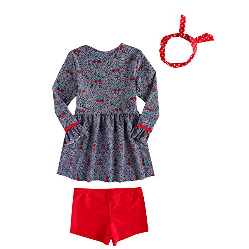 正規品 最新 子供水着 女児水着 3点セット ワンピース 頭巾 日焼け防止 キッズ水着 ラッシュガード 帽子付き水着 UPF50+素材使用 (5T(100-110))