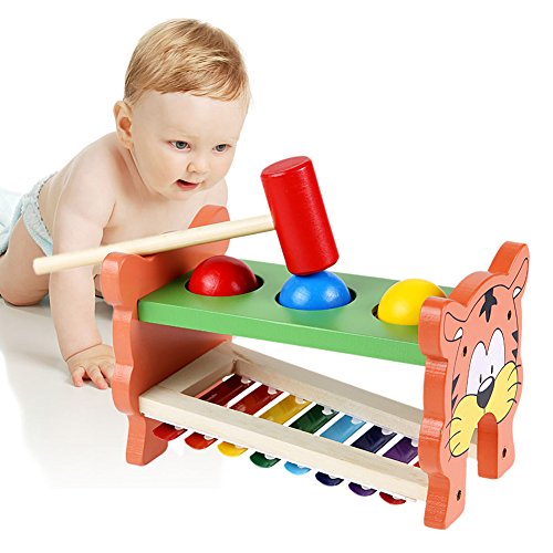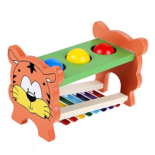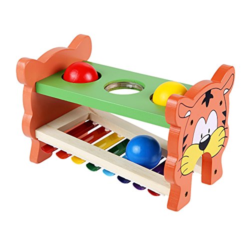 Vktech ベビー おもちゃ 木製 打楽器 ピアノ 鉄琴 ハンマートイ たたいてコロン ハンマートイ 木製ボール ボックス ラーニングトイ 知育おもちゃ 子供用
