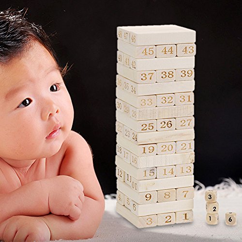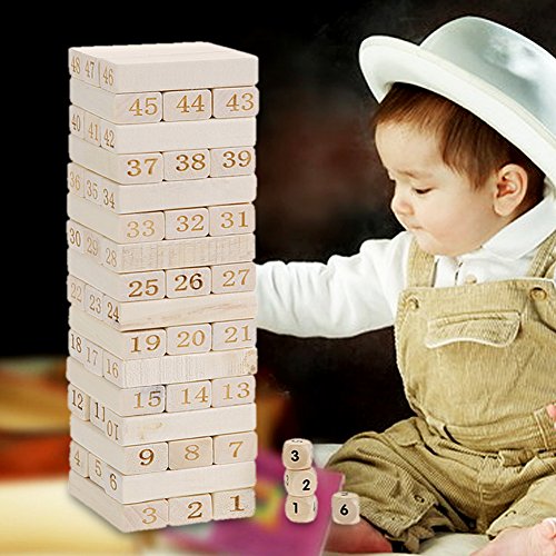 子供キッズ 木製  知育玩具 赤ちゃん 数字 積み木 タワー ジェンガ 48ピース