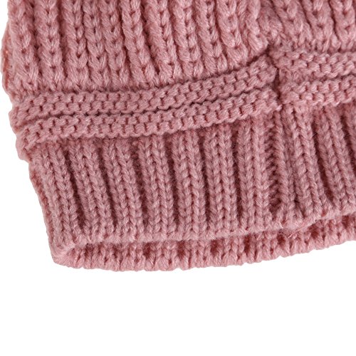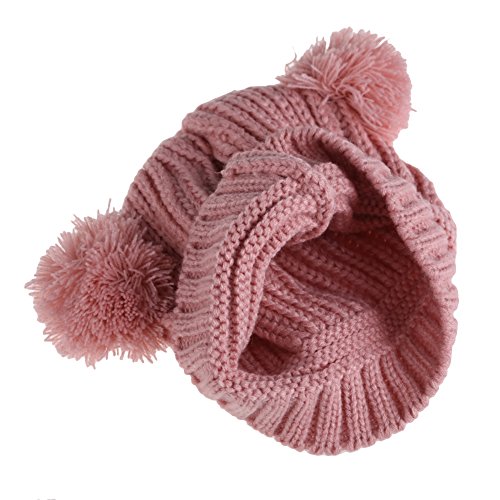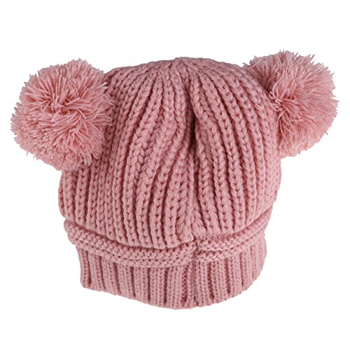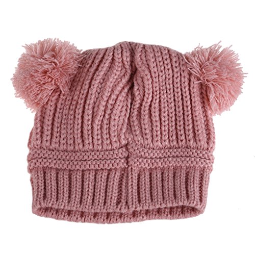 Vktech ベビー ボンボン 耳付き ニットキャップ ポンポン ニット帽 女の子 男の子 赤ちゃん キッズ ニット 帽子 (ピンク)