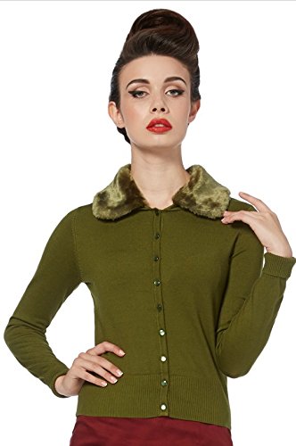 Voodoo Vixen - Faux Fur Collar Khaki Green Cardigan L