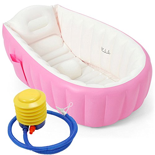 ふかふかベビーバス W 折りたたみ 沐浴 +ポンプ 手動 足踏みタイプ (ピンク)