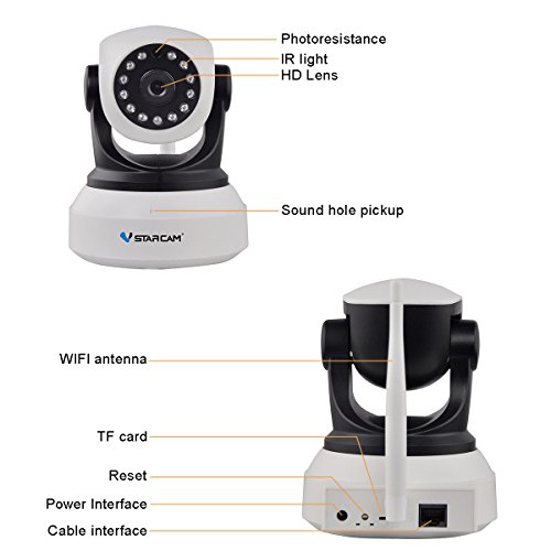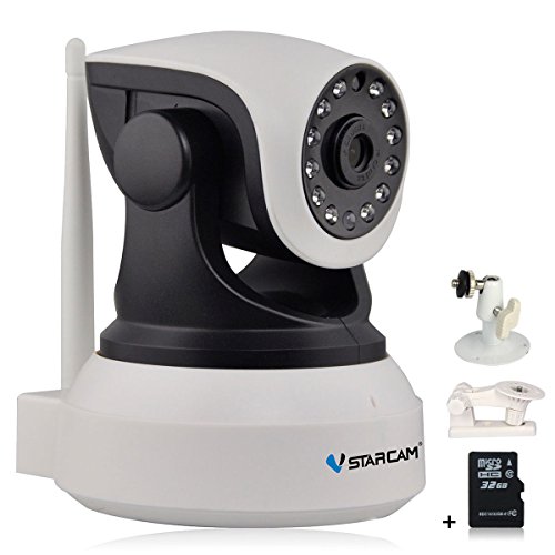 SRI SHOP Vstarcam C7824wip ネットワークカメラ監視+ 32GB SDカード+ スタンドセット ベビーモニター 有線/無線対応 100万画素 720P MicroSDカード録画 マイク内臓 動体検知 遠隔操作可能 子供/老人/ペット等留守番 ホワイト