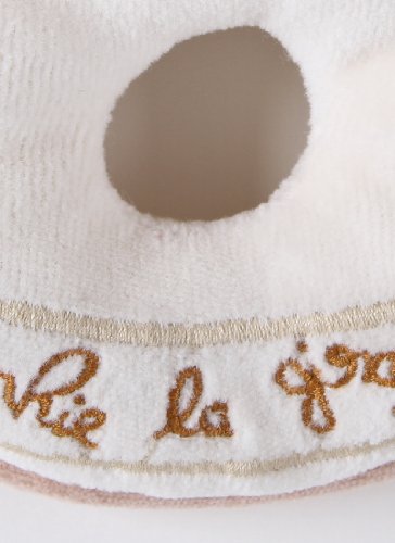 柔らかなベルの音がする優しい色合いのソフィーのラトルです。 赤ちゃんのほっぺにも気持ちいい滑らかな肌触り心地です。 赤ちゃんも安心して使えるオーガニックコットン100%の布とトオモロコシから作られた詰め物が入っています。