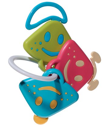 Combining flexible and rigid plastic, this rattle is ideal for chewing.