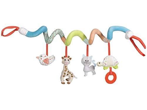 ベビーカーに付けられるお出かけのおもちゃにピッタリなキリンのソフィーのストローラートイです。 キリンのソフィーのおでかけループは、長さは20~80cmで、両端はマジックテープで固定できます。 ループには、キリンのソフィーやソフィーのおともだちが付いています。 ねこのラザールは、キューキューと音がなる仕掛け、キリンのソフィーは、ティンカーベルの優しい音。ことりのキウィは、赤ちゃんの大好きな紙をクシャクシャにする音です。かめのマーゴには歯固めがついています。色もカラフルでお出かけが楽しくなります。 ベビーカーに巻きつけてご使用ください。ベビーベッドにも付けられますので、赤ちゃんの手の届く高さにぶら下げると、赤ちゃんの運動を促進するおもちゃとしてもご利用できます。
