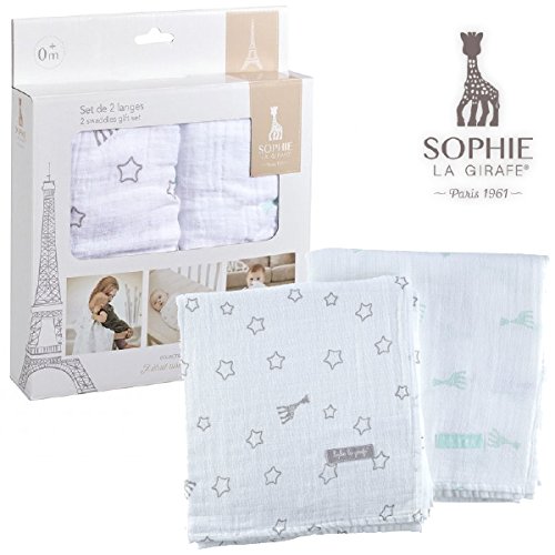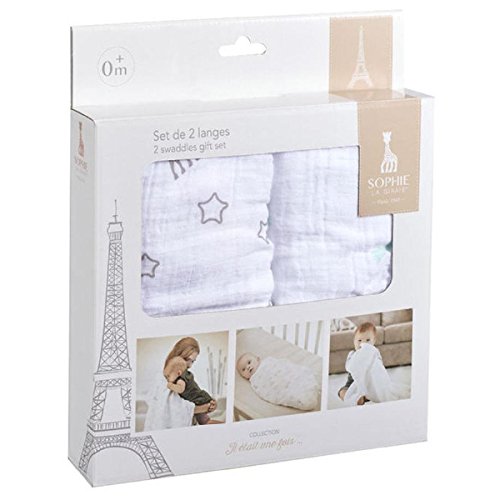 可愛いソフィーのシルエットがデザインされた2枚のおくるみは、ご自宅用のみならず、ご出産のお祝いにも最適です。