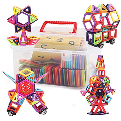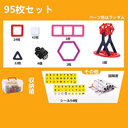 amy&benton (95ピース)磁気おもちゃ 磁性構築ブロック 磁石付き 子供おもちゃ 磁石ブロック キッズ 誕生日 クリスマス 新年 プレゼント DIY 積み木 四角、三角、長三角 車輪 知育玩具 想像力と創造力を育てる 誕生日お祝い クリスマス プレゼント 入園祝い 組立セット 収納ケースつき