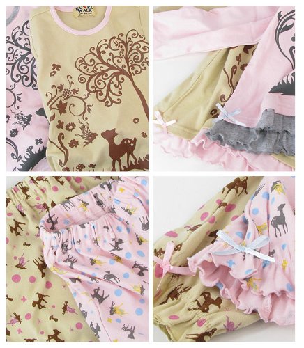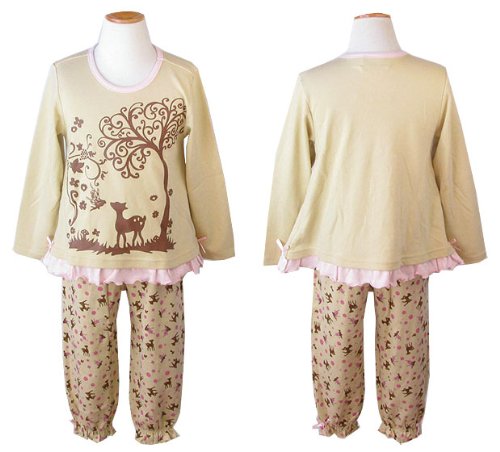 WALK ルームウエアにもオススメ♪フリルが可愛い長袖パジャマ《コジカ》【PJ-105】 (100cm, ベージュ)